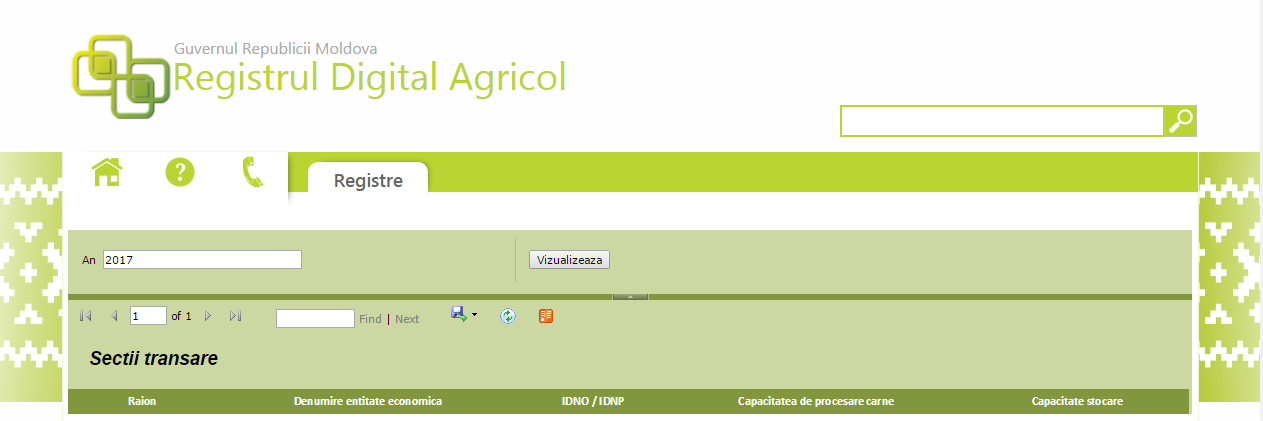 Registrul Secții tranșare are scopul extragerii de informații cu privire la capacitatea de procesare carne, capacitatea de producție, capacitatea de stocare, capacitatea de comercializare per entitate economică.