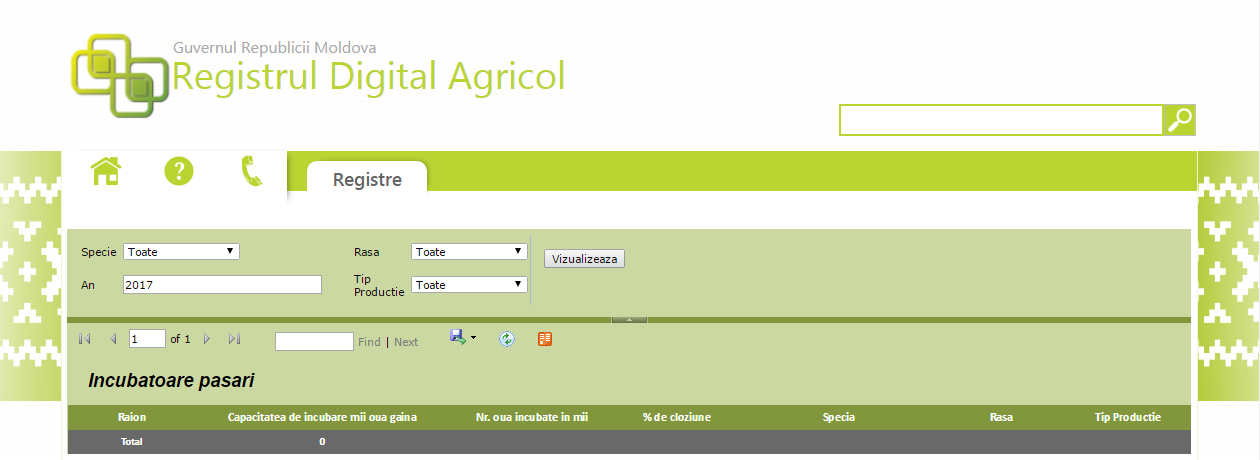 Registrul Incubatoare păsări are scopul extragerii de informații cu privire la capacitatea de incubare per entitate economică.