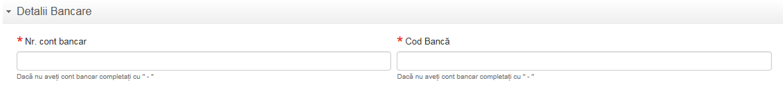 Pentru a vizualiza și completa câmpurile dintr-o anumită secțiune trebuie utilizatorii trebuie să efectueze click pe săgeata din fața numelui secțiunii.